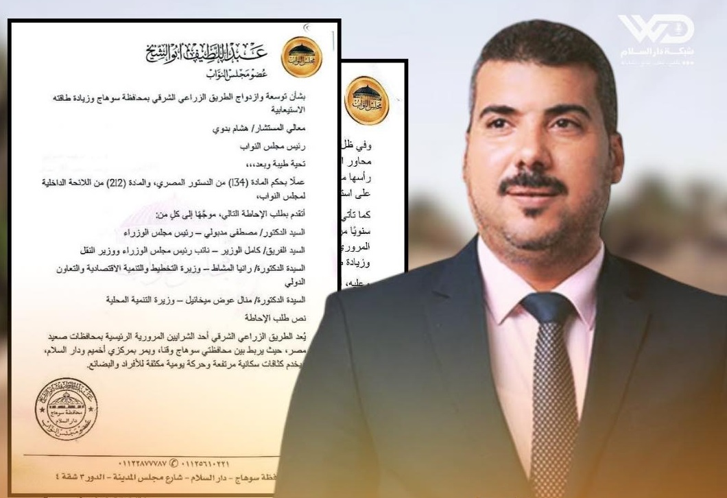 النائب عبد اللطيف أبو الشيخ يتقدم بطلب إحاطة لتوسعة وازدواج الطريق الزراعي الشرقي