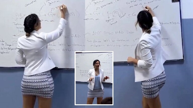 ضجت مواقع التواصل الاجتماعي بمقطع فيديو لمُدرسة اقتصاد في إحدى المؤسسات التعليمة التركية وهي ترتدي ملابس مثيرة أثناء شرحها الدرس لطلابها.