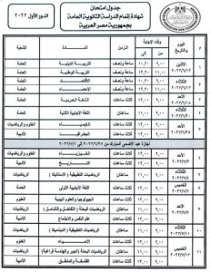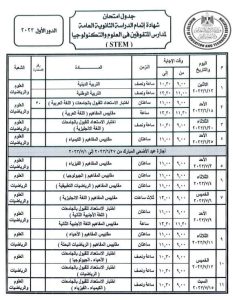 اعتمد الدكتور رضا حجازي وزير التربية والتعليم والتعليم الفني، جدول امتحانات الدور الأول لشهادة إتمام الدراسة الثانوية العامة للعام الدراسي 2023/2022، وجدول امتحانات مدارس المتفوقين في العلوم والتكنولوجيا “STEM”، وجدول امتحانات شهادة إتمام الدراسة الثانوية العامة للمكفوفين.