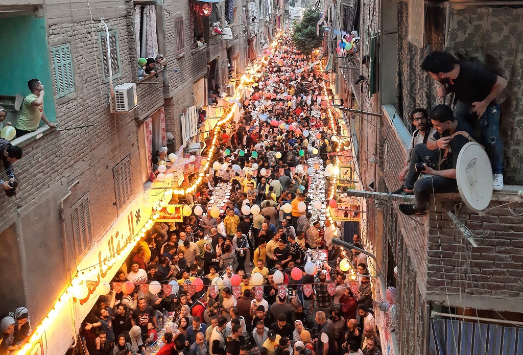 واعتاد أهالي عزبة حمادة بحي المطرية بالقاهرة إقامة إفطار سنوي يجتمع فيه المئات في أطول مائدة إفطار رمضانية تشهدها مصر.